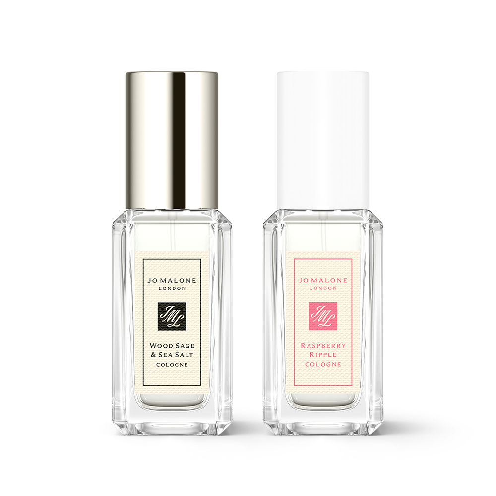Un coffret qui réunit deux eaux de Cologne de 9 ml, dont Raspberry Ripple 9 ml et Wood Sage & Sea Salt 9 ml, à porter seules ou superposées.